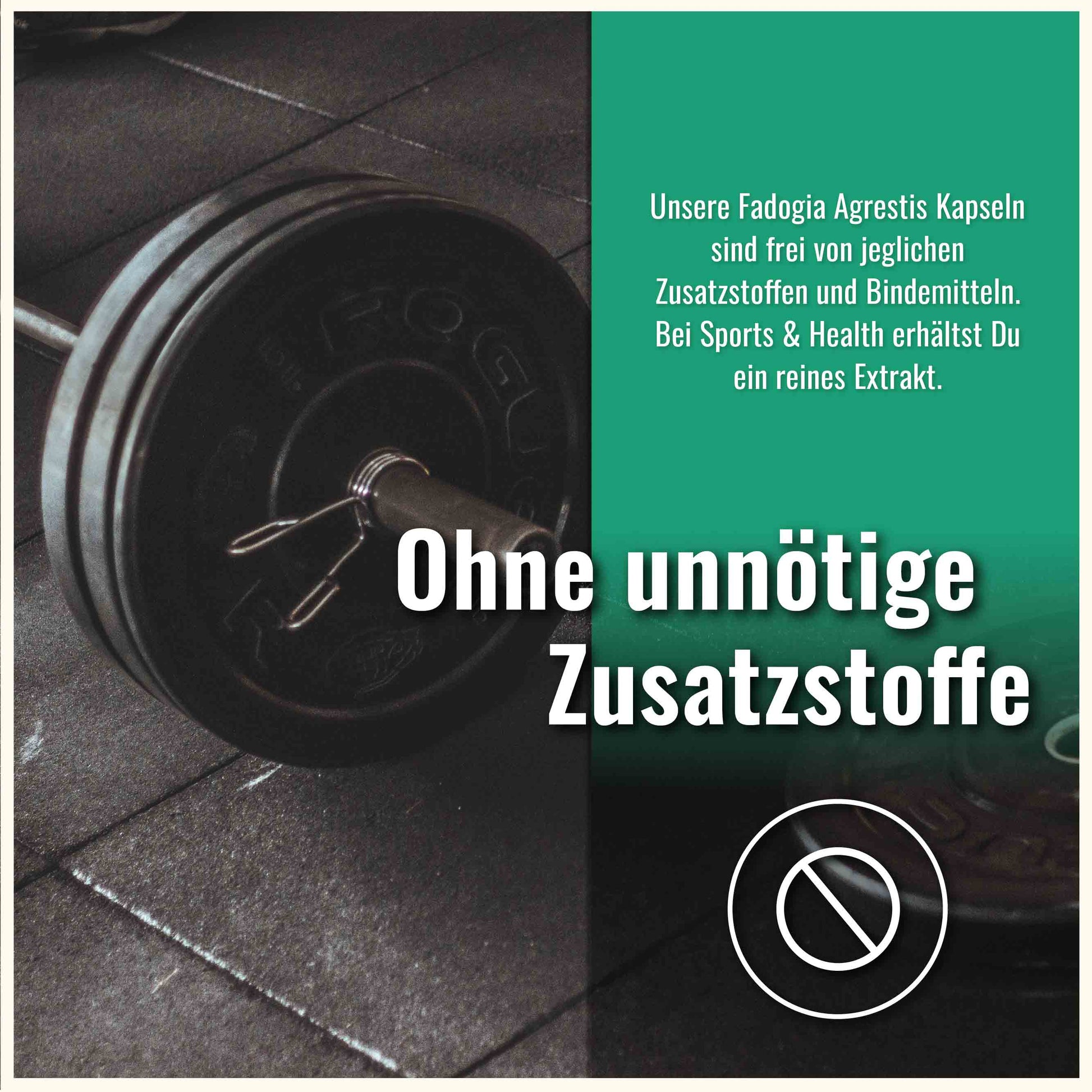 OHNE UNNÖTIGE ZUSATZSTOFFE: Unsere Fadogia Agrestis Kapseln sind frei von jeglichen Zusatzstoffen und Bindemitteln. Bei Sports & Health erhältst Du ein reines Extrakt.