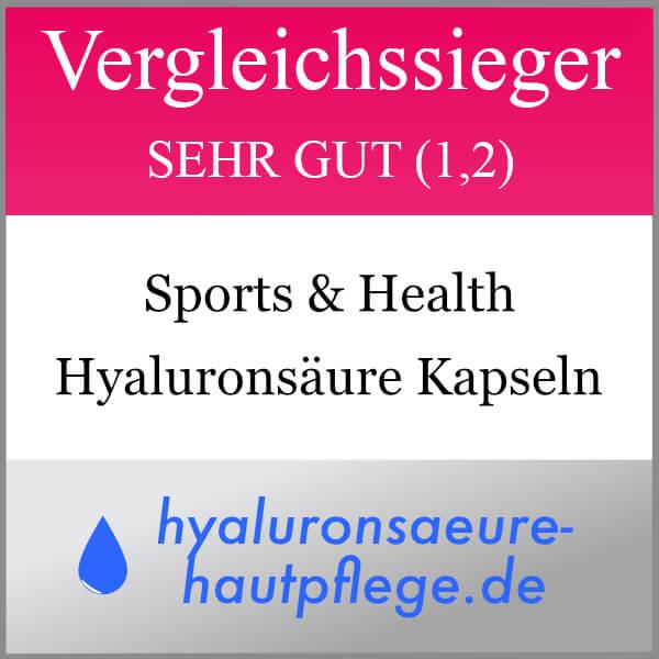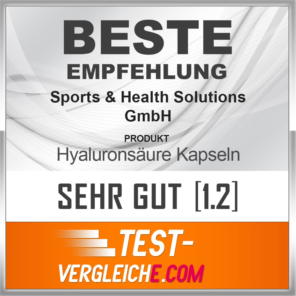 Seit April 2016 sind unsere Hyaluronsäure Kapseln Vergleichssieger auf der Seite vergleich.org. Im September 2016 erreichten unsere Hyaluronsäure Kapseln ein Vergleichssieger-Siegel, vergeben von test-vergleiche.com/hyaluronsaeure-kapseln-test. Seit November 2016 dürfen wir uns auch Vergleichssieger der Seite hyaluronsaeure-hautpflege.de nennen und somit ein weiteres Vergleichssieger Siegel für uns gewinnen. Wir sind 2017 erneut Vergleichssieger geworden! Unsere Hyaluronsäure Kapseln schneiden mit einer Note von "1,2 Sehr gut" am besten ab.