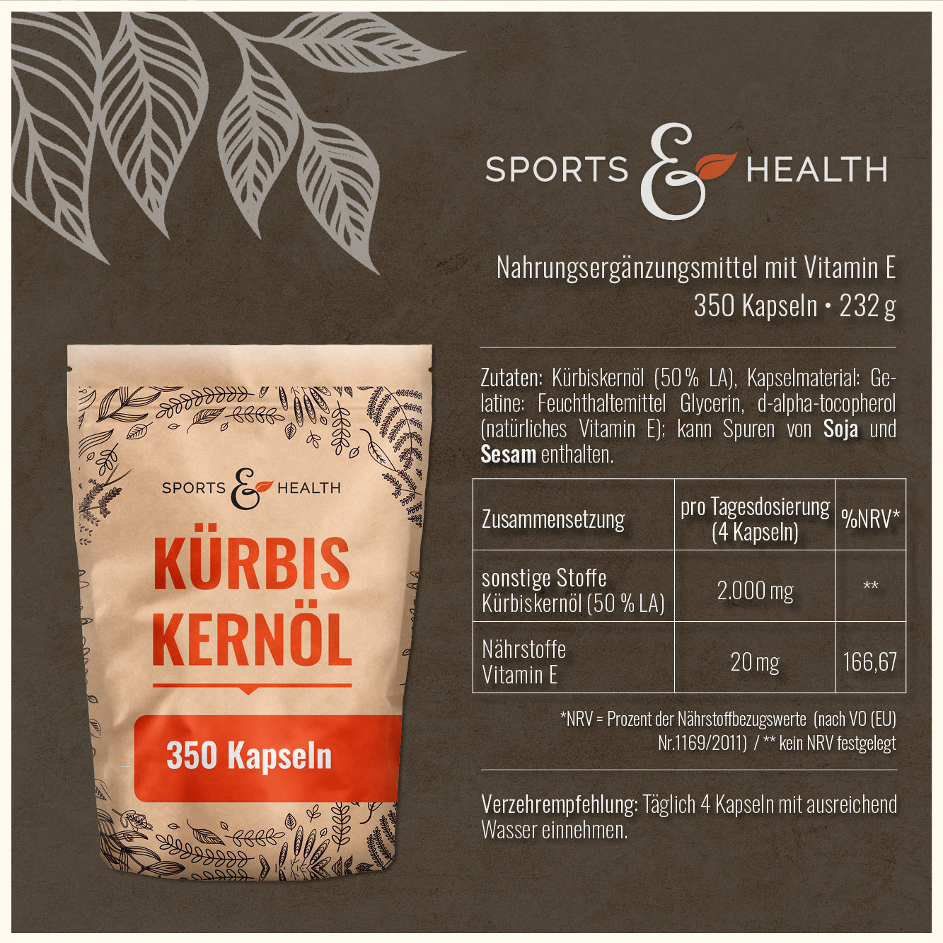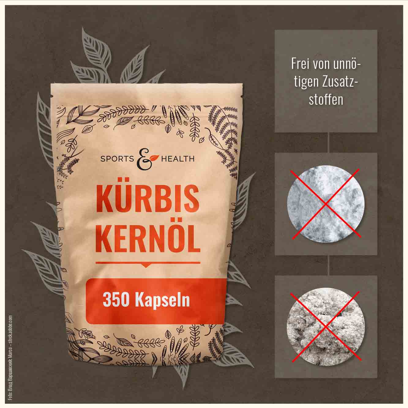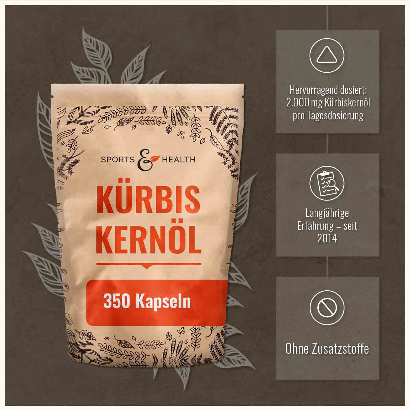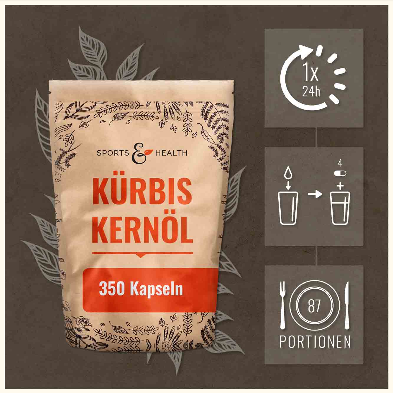 Hohe Dosierung: 350 Kürbiskernöl Kapseln in einer Softgel-Kapselhülle mit einer Dosierung von 2000mg Kürbiskernöl pro Tagesdosierung (4 Kapseln)
