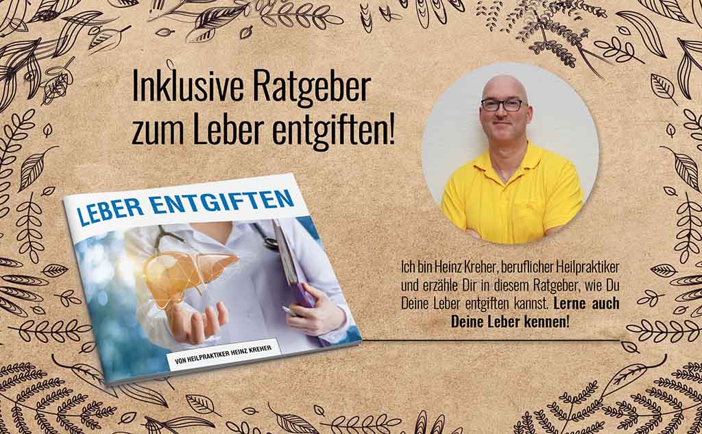 Gratis zu unseren Leber Vital Kapseln erhältst Du einen kostenlosen Ratgeber von einem Heilpraktiker, der Dir die Funktion von der Leber aufzeigt und Dir erklärt, wie Du eine Leberentgiftung durchführen kannst.