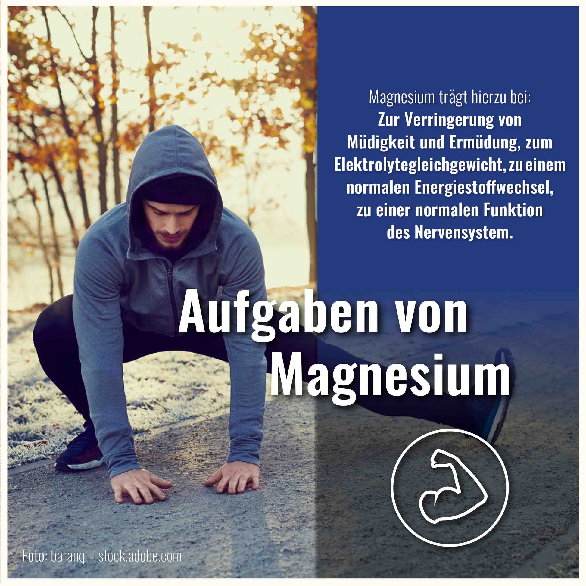 AUFGABEN VON MAGNESIUM: Magnesium trägt unter anderem bei zur Verringerung von Müdigkeit und Ermüdung, zum Elektrolytegleichgewicht, zu einem normalen Energiestoffwechsel, zu einer normalen Muskelfunktion, zu einer normalen Funktion des Nervensystem.