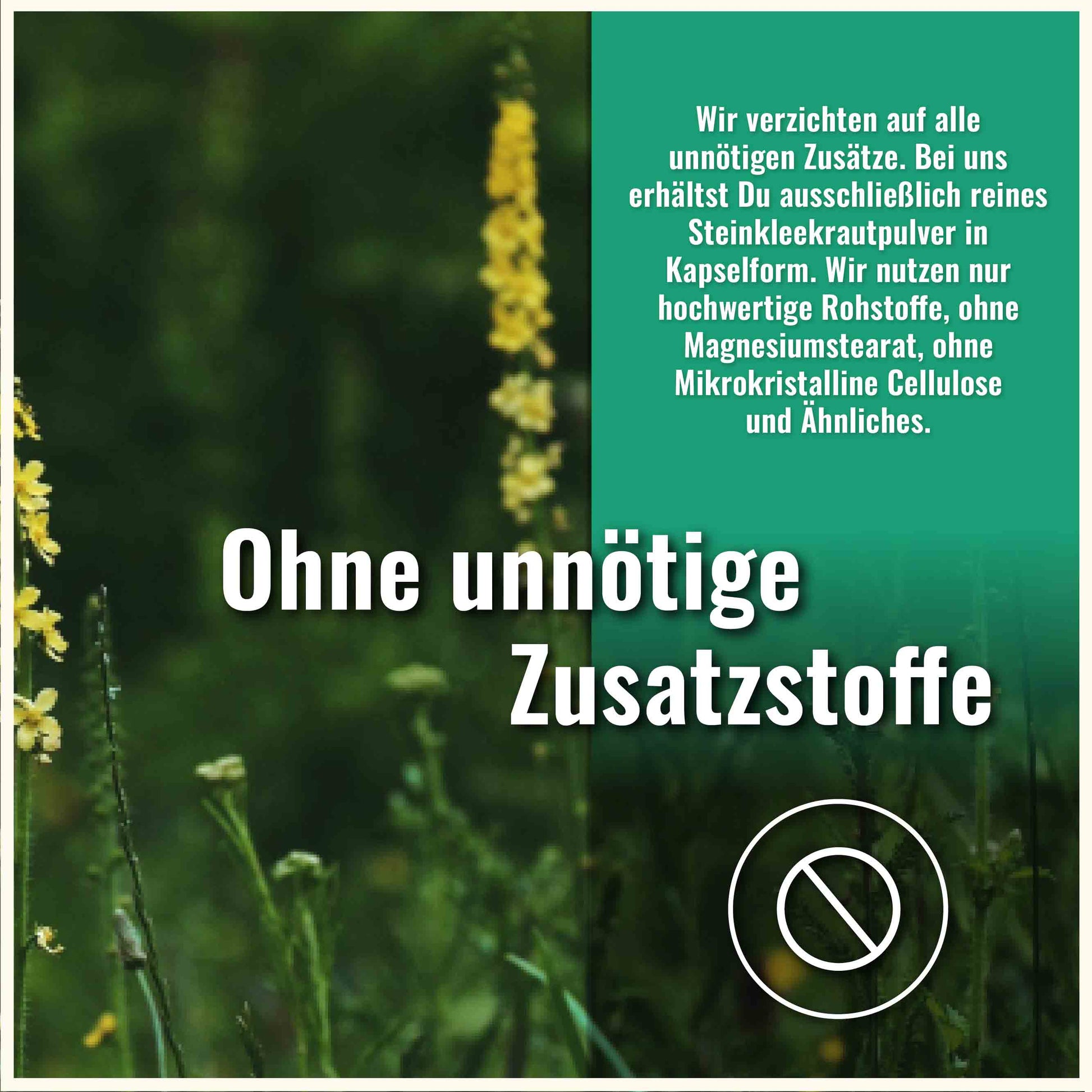 Beste Qualität: Unsere Steinklee Kapseln sind perfekt dosiert. Du erhältst bereits 900 mg pro Tagesdosierung (3 Kapseln). Das Steinklee ist frei von Zusätzen.