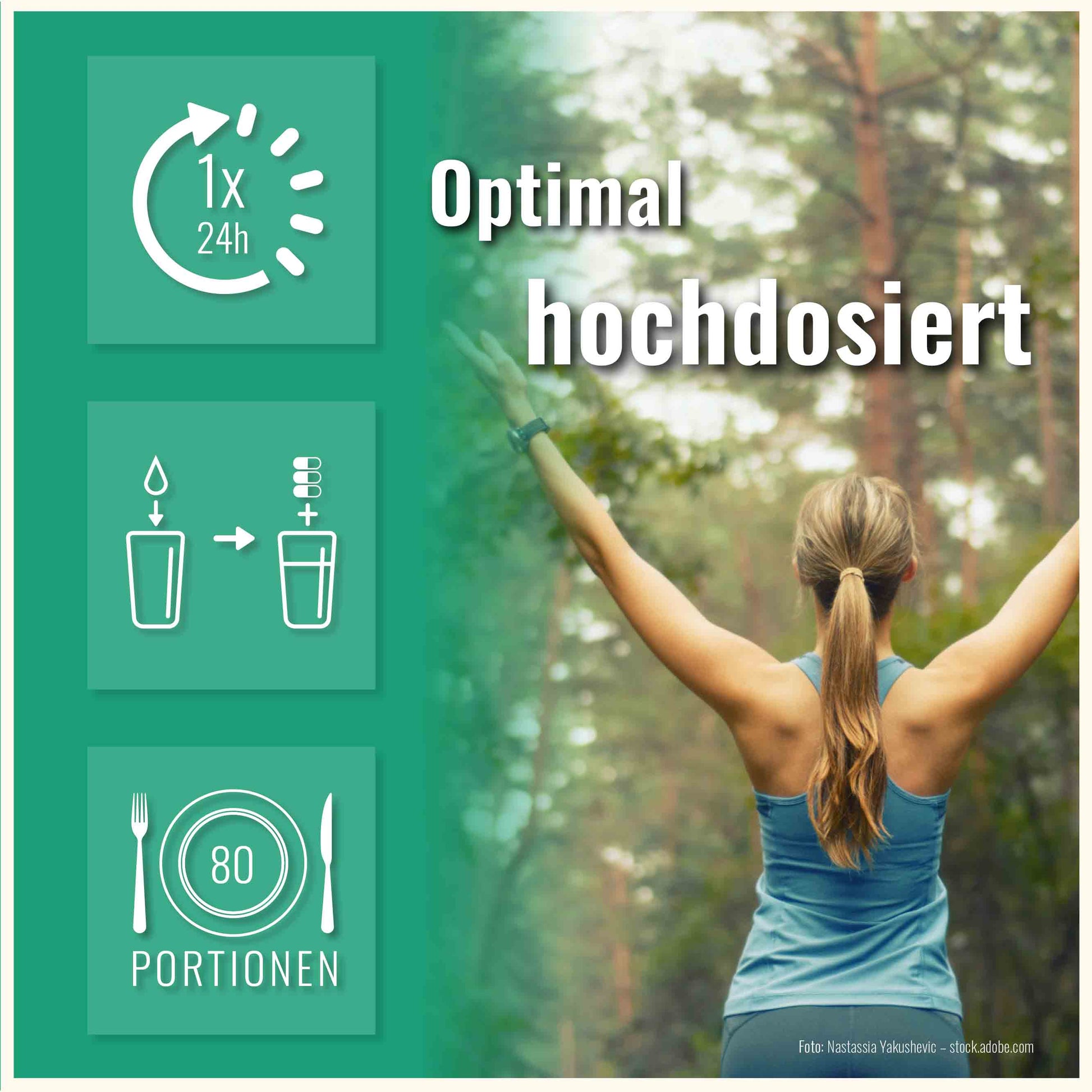 Wir empfehlen Dir täglich 2 Kapseln mit ausreichend Wasser einzunehmen.
