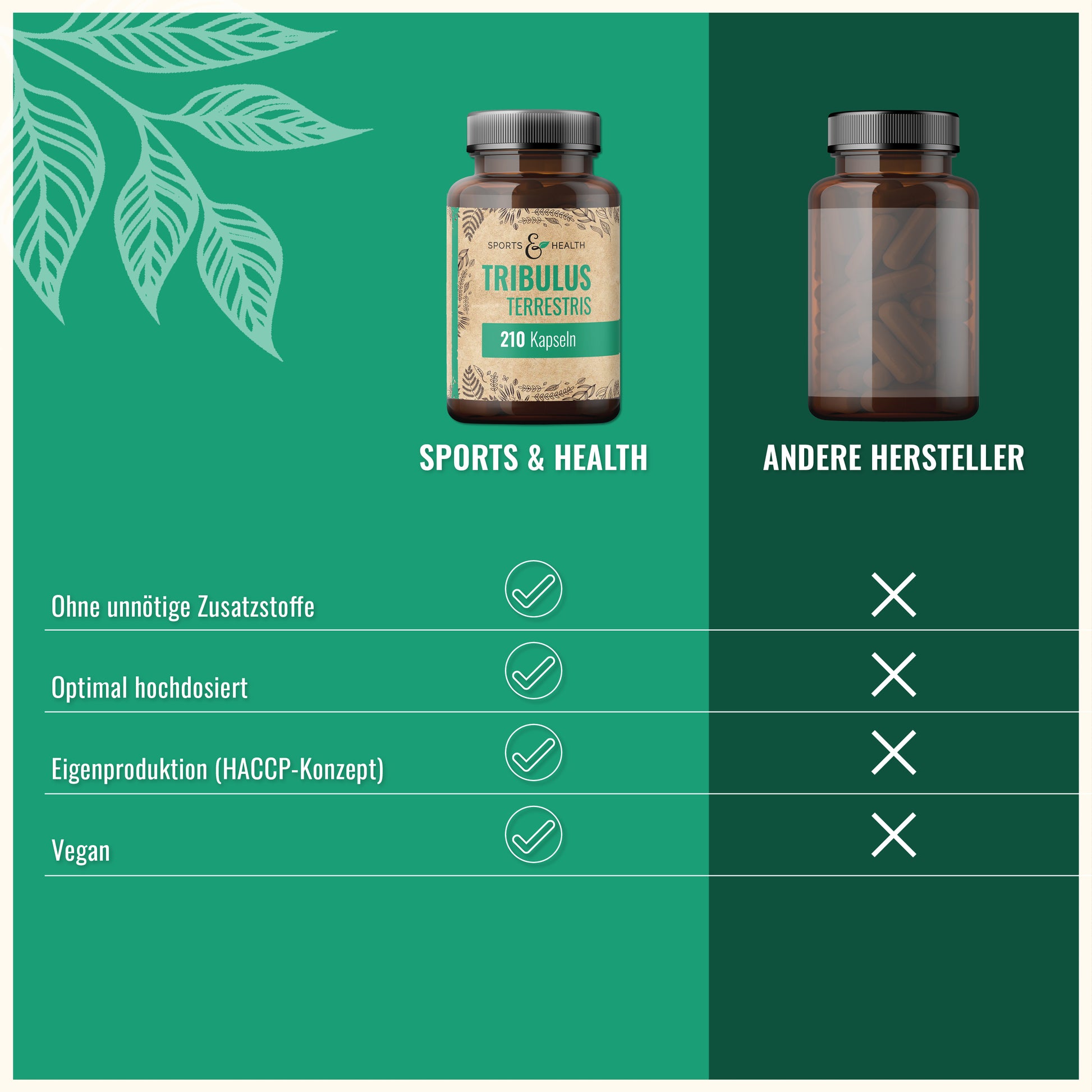 90 % Saponine enthalten / 2000mg Tribulus pro Tagesdosis: Saponine kommen in zahlreichen Pflanzenteilen vor, wie zum Beispiel in den Wurzeln, Blättern, Samen oder Früchten. Pro Tagedosierung erhältst du 2000 mg Tribulus.