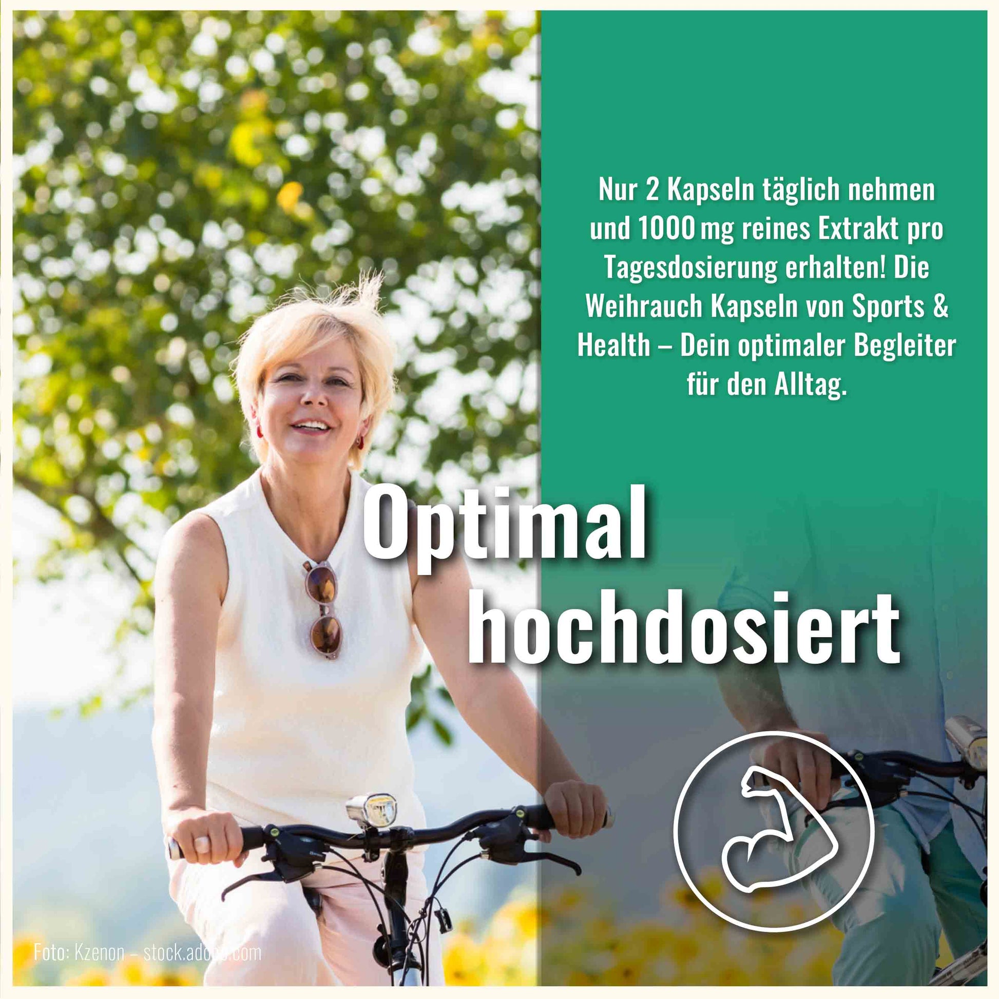 - WEIHRAUCH HOCHDOSIERT: Nur 2 Kapseln täglich nehmen und 1000mg reines Extrakt pro Tagesdosierung erhalten! Die Weihrauch Kapseln von Sports & Health – Dein optimaler Begleiter für den Alltag.