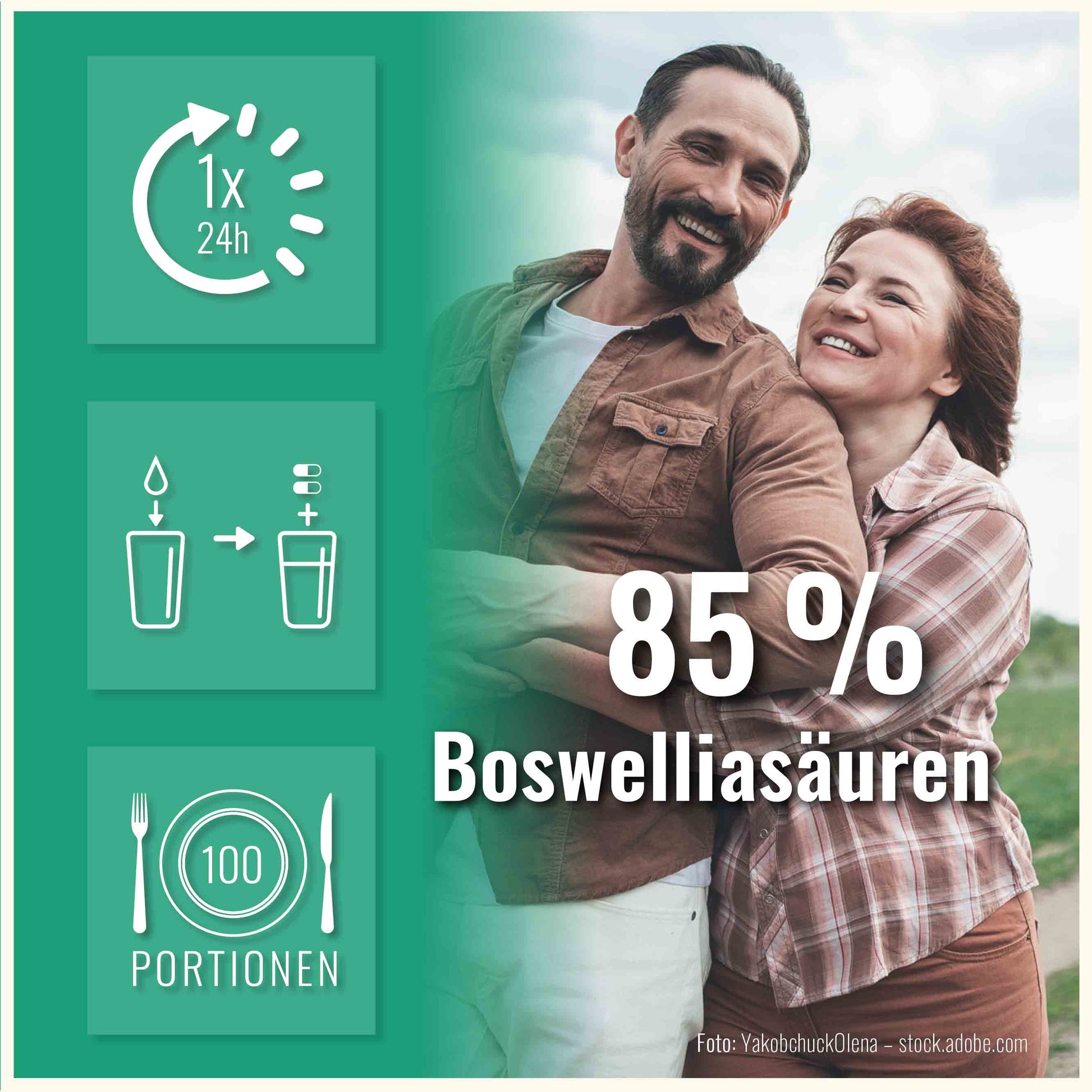 - 85% BOSWELLIA SÄUREN: Bei einer Tagesdosierung von 2 Kapseln täglich, erhältst du 1000 mg Weihrauch Extrakt pro Tag!