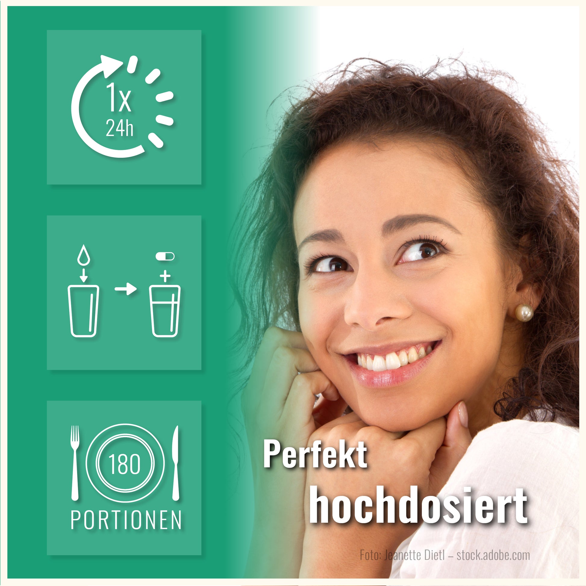 Hinweise: Die angegebene empfohlene Verzehrmenge darf nicht überschritten werden. Nahrungsergänzungsmittel sind kein Ersatz für eine ausgewogene und abwechslungsreiche Ernährung und eine gesunde Lebensweise. Kühl (max. 22 °C), trocken und vor Licht geschützt lagern. Außerhalb der Reichweite kleiner Kinder aufbewahren.